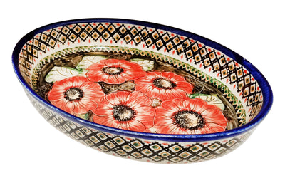 Boleslawiec Polish Pottery UNIKAT Large Oval Baker "Red Garden"