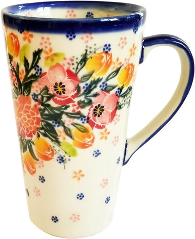 Boleslawiec Polish Pottery Bistro mug 16 oz, Unikat Eva's Collection "Garden Romance"