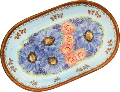 Boleslawiec Polish Pottery UNIKAT 11" long Serving Platter "Blue Sky Meadow"