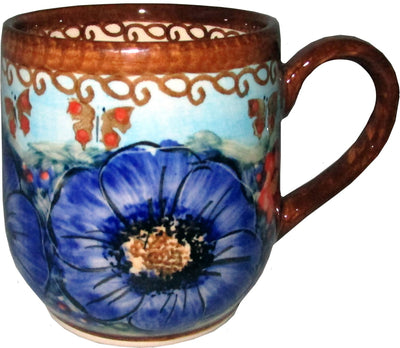 Boleslawiec Polish Pottery UNIKAT Coffee or Tea Ladies Mug 10 oz "Blue Sky Meadow"