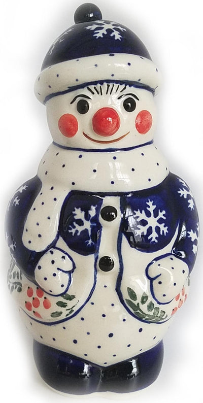 This handmade ceramic snowman was crafted from Boleslawiec clay and painted by Polish artists. It is scratch and chip resistant.