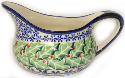 Boleslawiec Polish Pottery Christmas Gravy Boat "Holly"