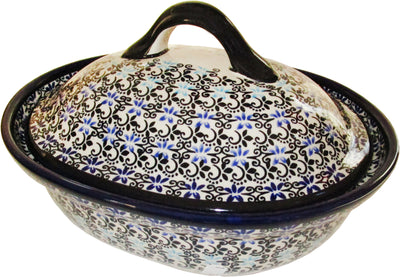 Boleslawiec Polish Pottery UNIKAT Oval Baker with Cover "Martina"