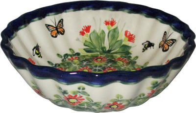 Boleslawiec Polish Pottery UNIKAT Medium Scalloped Bowl "Spring"