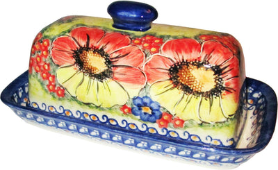 Boleslawiec Polish Pottery UNIKAT One Stick Butter Dish American Style "Flower Field"