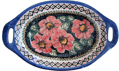 Boleslawiec Polish Pottery UNIKAT Serving or Baking Dish with Handles "Red Garden"