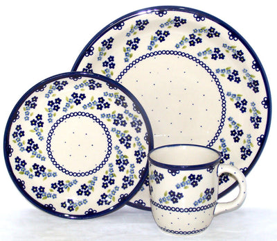 Boleslawiec Polish Pottery UNIKAT 3 Pcs Plate Setting "Forget-Me-Not"