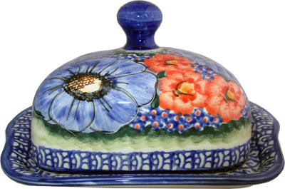 Due to handmade nature of our Polish pottery butter dishes, designs and color details may vary from piece to piece. Complete your dinnerware set with other blue floral ceramic plates and serving dishes from the Isabelle Collection.
