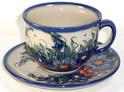 Boleslawiec Polish Pottery UNIKAT Cup and Saucer "Wild Field"