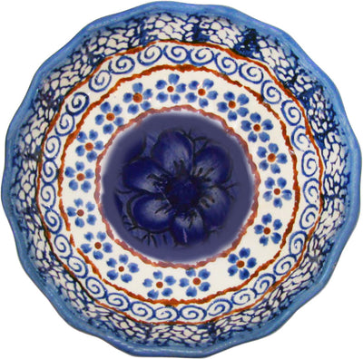 Boleslawiec Polish Pottery UNIKAT Ice Cream Scalloped Bowl "Blue Garden"