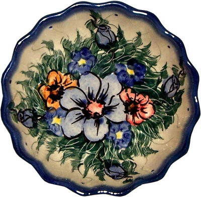 Boleslawiec Polish Pottery UNIKAT Ice Cream Scalloped Bowl "Wild Field"