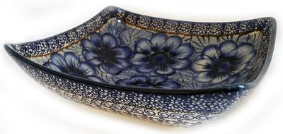 Boleslawiec Polish Pottery Unikat Square Serving Bowl "Blue Garden"
