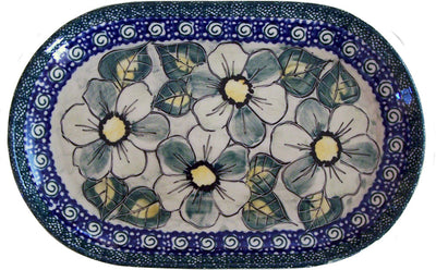 Boleslawiec Polish Pottery UNIKAT Serving Platter 9.25" long "Green Garden"
