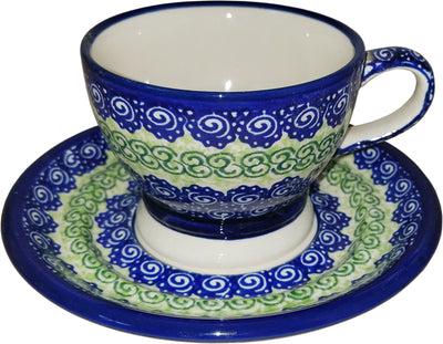 Boleslawiec Polish Pottery UNIKAT Cup and Saucer "Alex"