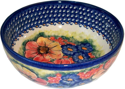 Boleslawiec Polish Pottery UNIKAT Pasta or Soup Serving Bowl "Flower Field"