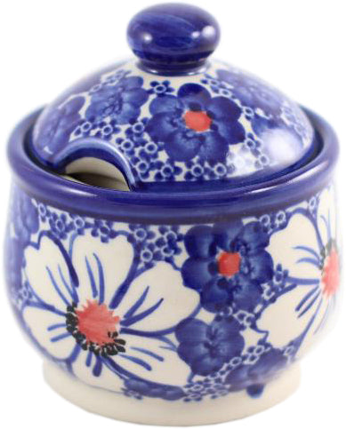 Boleslawiec Polish Pottery UNIKAT Sugar Bowl Honey Pot "Haylee Daisy" from Eva's Collection