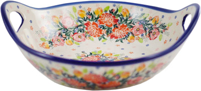Boleslawiec Polish Pottery UNIKAT Large Serving Bowl with Handles "Garden Romance"
