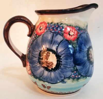 Boleslawiec Polish Pottery UNIKAT 1L Pitcher Water or Milk Jug "Blue Sky Meadow"