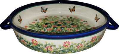 Boleslawiec Polish Pottery UNIKAT Round Baker with Handles "Spring"