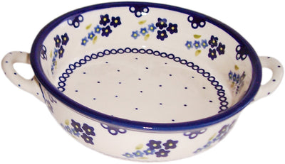 Boleslawiec Polish Pottery UNIKAT Round Baker with Handles "Forget Me Not"