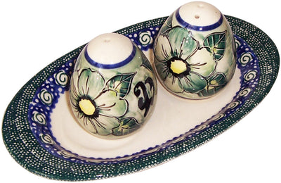 Boleslawiec Polish Pottery UNIKAT Salt and Pepper Set "Green Garden"
