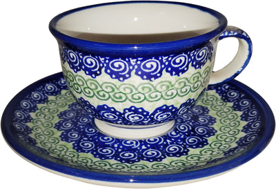 Boleslawiec Polish Pottery UNIKAT Cup and Saucer "Alex"