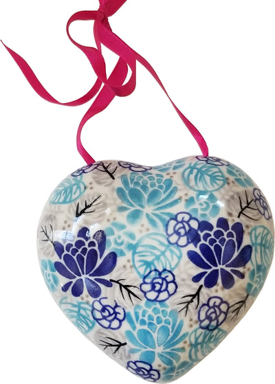 Boleslawiec Polish Pottery UNIKAT Christmas Heart Ornament "Lotus Symphony"