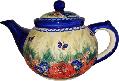 Boleslawiec Stoneware Polish Pottery UNIKAT Teapot Coffee Pot "Wild Roses"