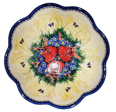 Boleslawiec Stoneware Polish Pottery UNIKAT XLarge Scalloped Bowl "Wild Roses"