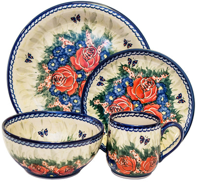 Boleslawiec Polish Pottery UNIKAT Dinnerware 4 Pcs Place Setting "Wild Roses"